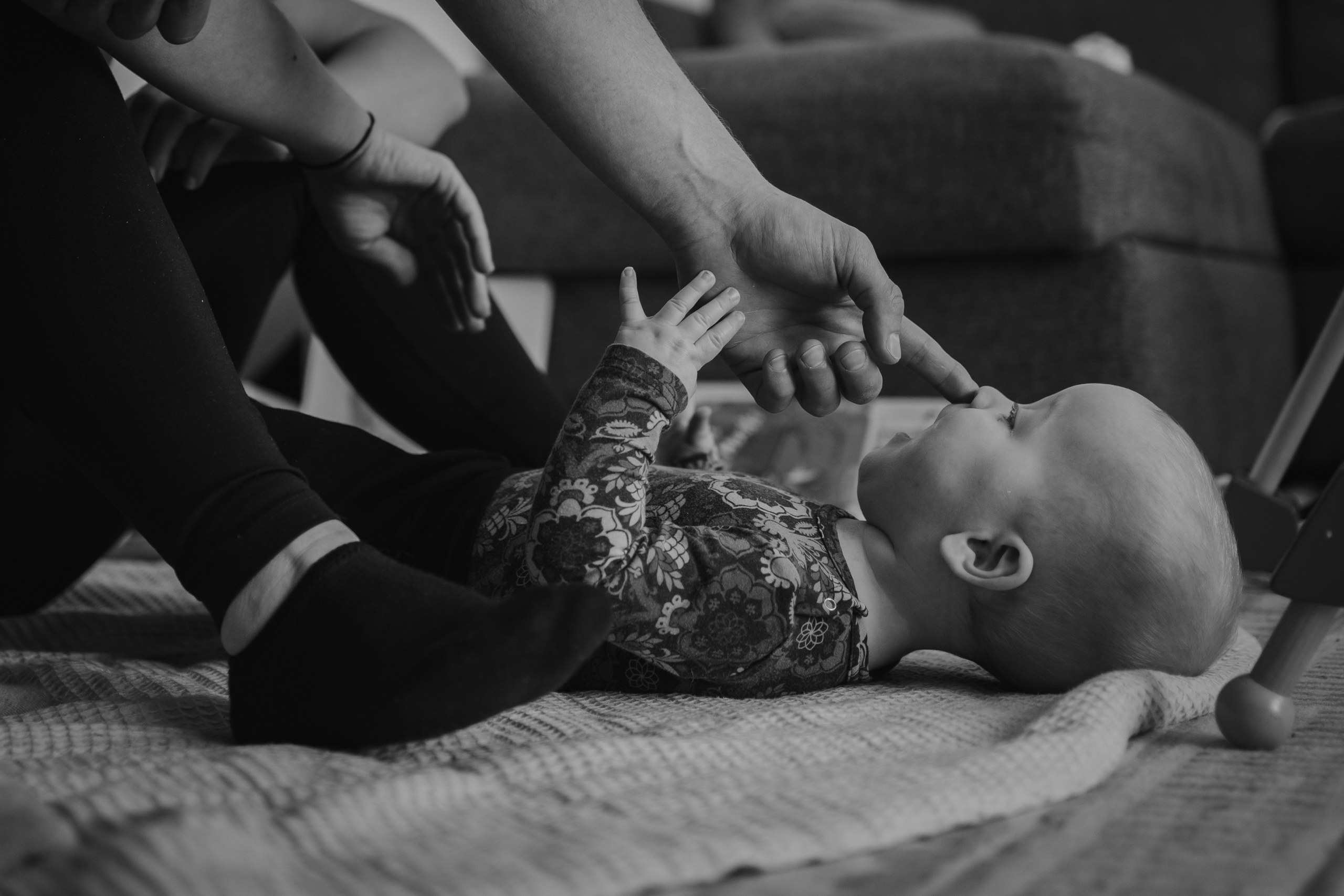 frischgebackene Eltern im Wochenbett, die die erste Zeit so festhalten möchten, wie sie wirklich ist – zwischen Müdigkeit, Liebe und Chaos